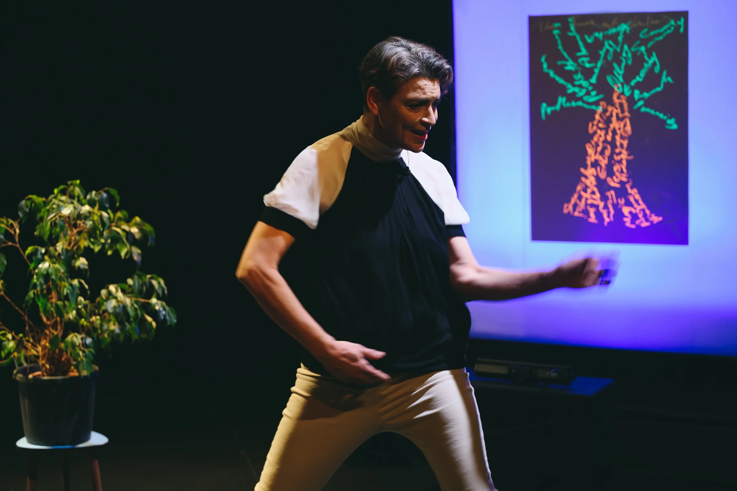 In A creative process called life, Lia steps into the role of a motivational speaker, exploring how life itself is a DIY creative process. Drawing parallels between her personal journey and years of artistic experience, she offers an engaging blend of lecture-performance and interactive game. The piece moves fluidly through uncharted territories and unexpected moments, much like the twists and surprises we encounter in both life and art. During these unpredictable moments, we often seek support, and, in this performance, the audience is invited to offer their help as performer and audience members navigate the journey together.
