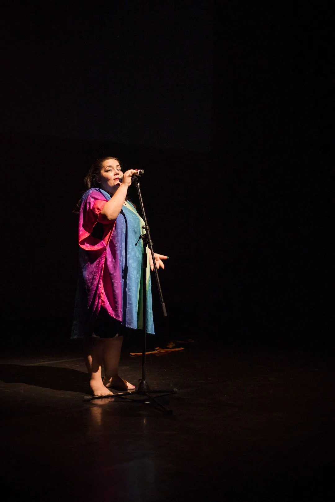 The solo performance practice focuses on how autobiography and stories from one's life can become meaningful sources of material for the stage. Inspired partly by stand-up comedy principles, combined with Lia’s choreographic and performative methods, the practice aims the use self-referential, self-sarcastic and experiential information as vehicles which connect the performer to the audience by sharing feelings of empathy, fragility, and humor.